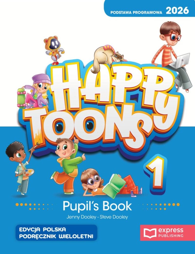 Happy Toons to zupełnie nowy kurs dla klas 1-3, przygotowany z myślą o dzisiejszych uczniach i tym, co najbardziej ich angażuje! Skupia się nie tylko na nauce języka, ale też na rozwijaniu kompetencji emocjonalnych i społecznych, dbając o harmonijny rozwój dziecka. Kurs jest wyposażony w komponenty cyfrowe nowej generacji!