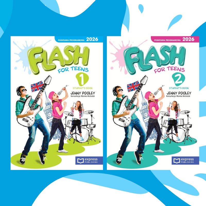 Informujemy, że numery dopuszczenia dla podręczników Flash for Teens 1 i Flash for Teens 2 są w trakcie realizacji. Podręczniki zostały opracowane zgodnie z podstawą programową 2026. Seria Flash for Teens dla klas 4-8 daje nauczycielom realną możliwość wyboru wariantu podstawy programowej – standardowego lub wyższego – który będą realizować z daną klasa od 1 września 2026 r.
